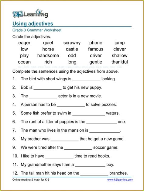 Web Third Grade Adjectives Worksheets.