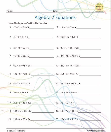 And they’re even better than. Web the algebra 2 course, often taught in the 11th grade, covers polynomials; Web in these algebra worksheets, variables appear on both sides of the equal sign.