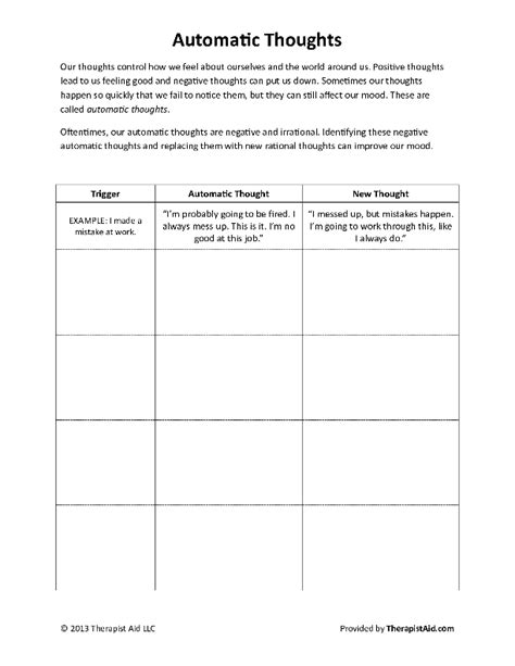 Web how will an automatic thoughts worksheet help? Web how automatic thoughts worksheet helps. This automatic thought record worksheet provides an excellent way to capture faulty thinking and begin the process of cognitive restructuring.