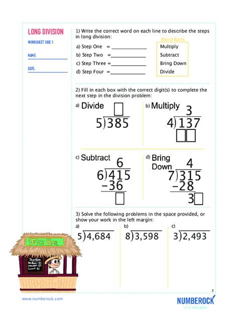 Web search printable division worksheets. Division can be tough for any student, but it's an essential skill for more advanced math concepts. Children should be practicing on worksheets and divide huge numbers.